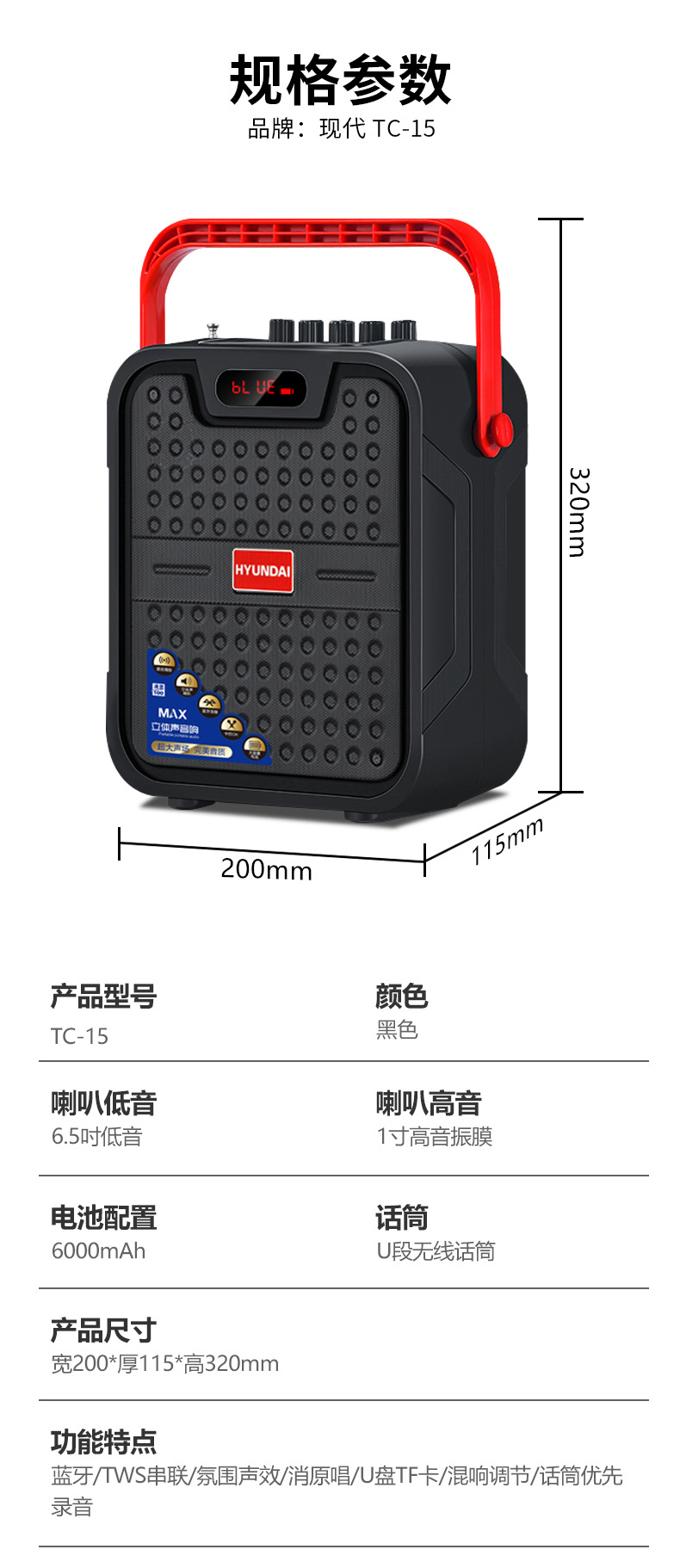 Modern wireless Bluetooth speaker high sound quality large volume square dance audio outdoor k singer home portable subwoofer